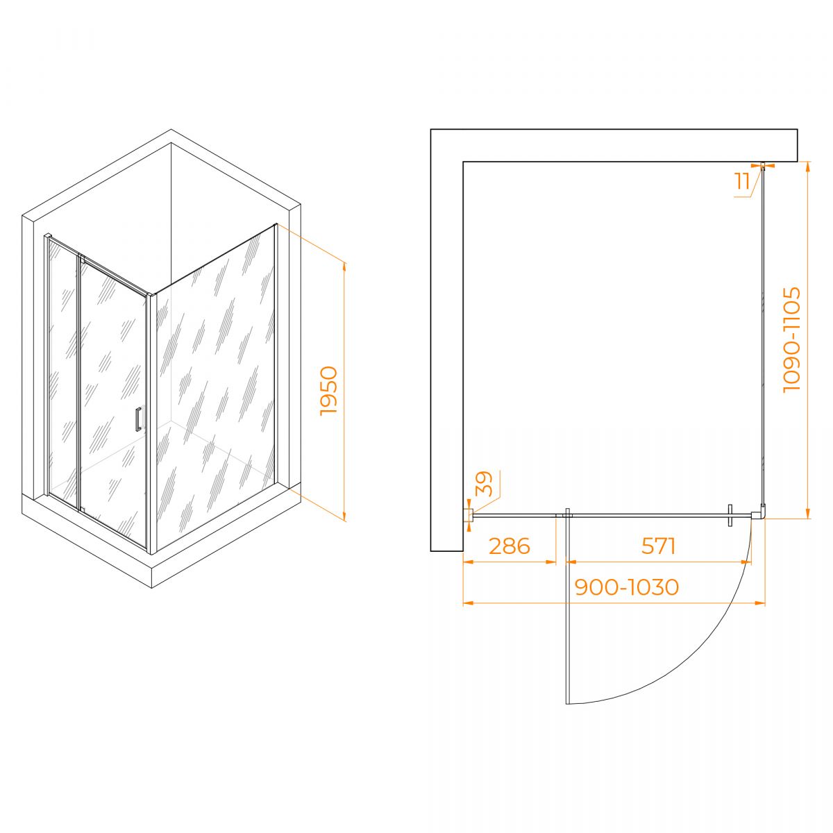 Душевой уголок RGW Passage PA-078 900*1100 мм (хром/прозрачный)