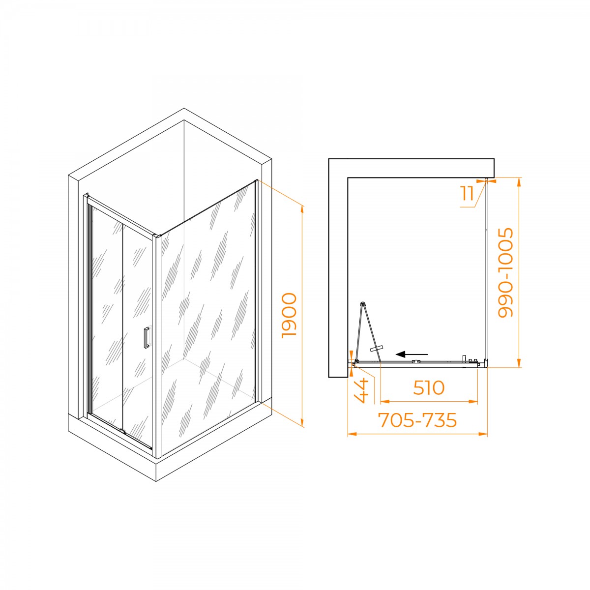 Душевой уголок RGW Passage PA-142B 1000*700 мм (чёрный/прозрачный)