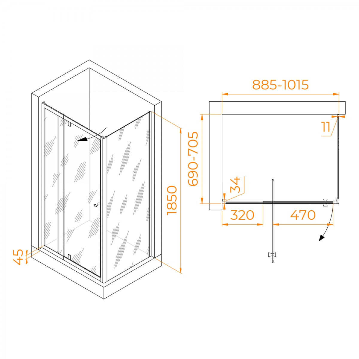 Душевой уголок RGW Passage PA-44 900*700 мм (хром/прозрачный)
