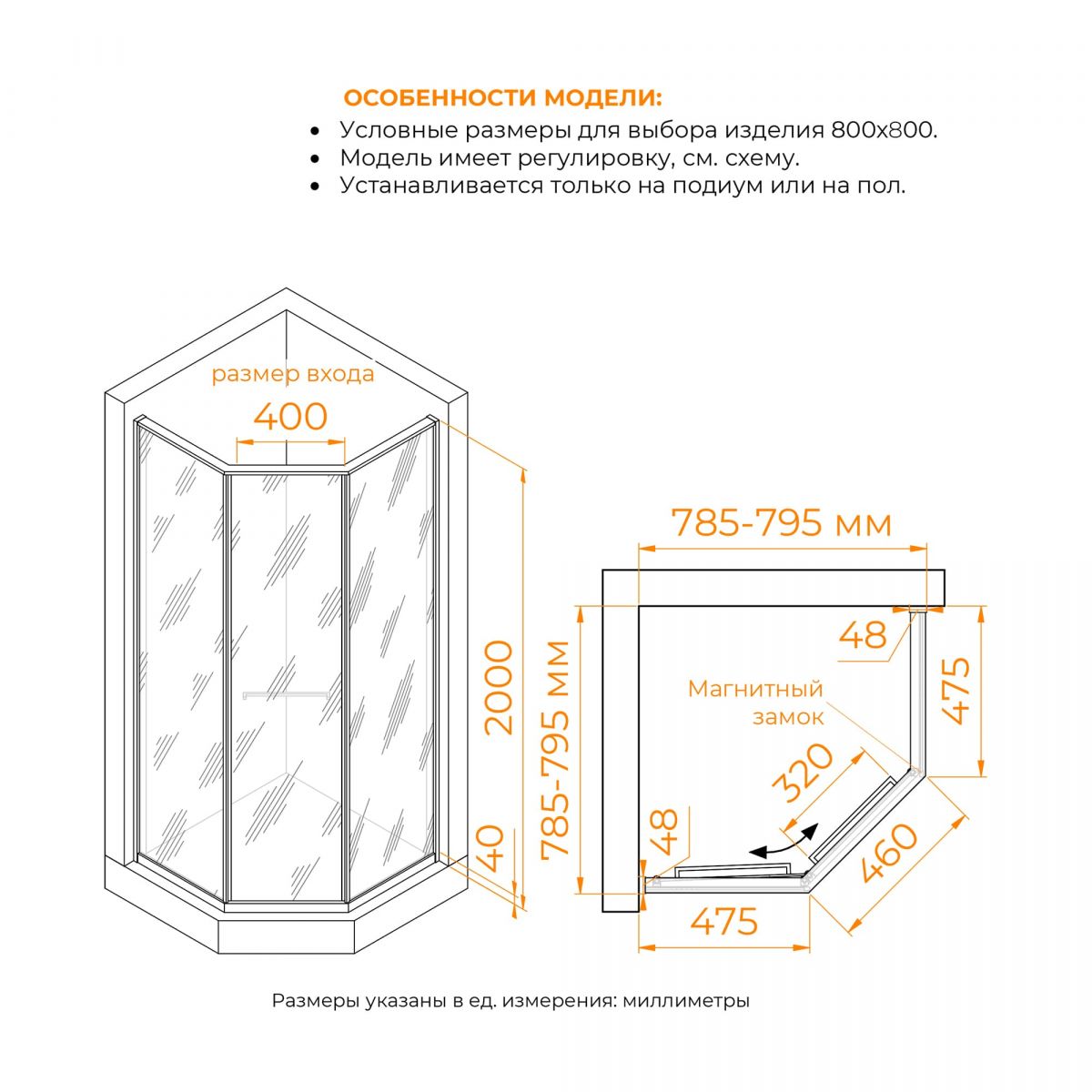 Душевой уголок RGW Stilvoll SV-82B "L" 800*800 мм (чёрный/прозрачное) L