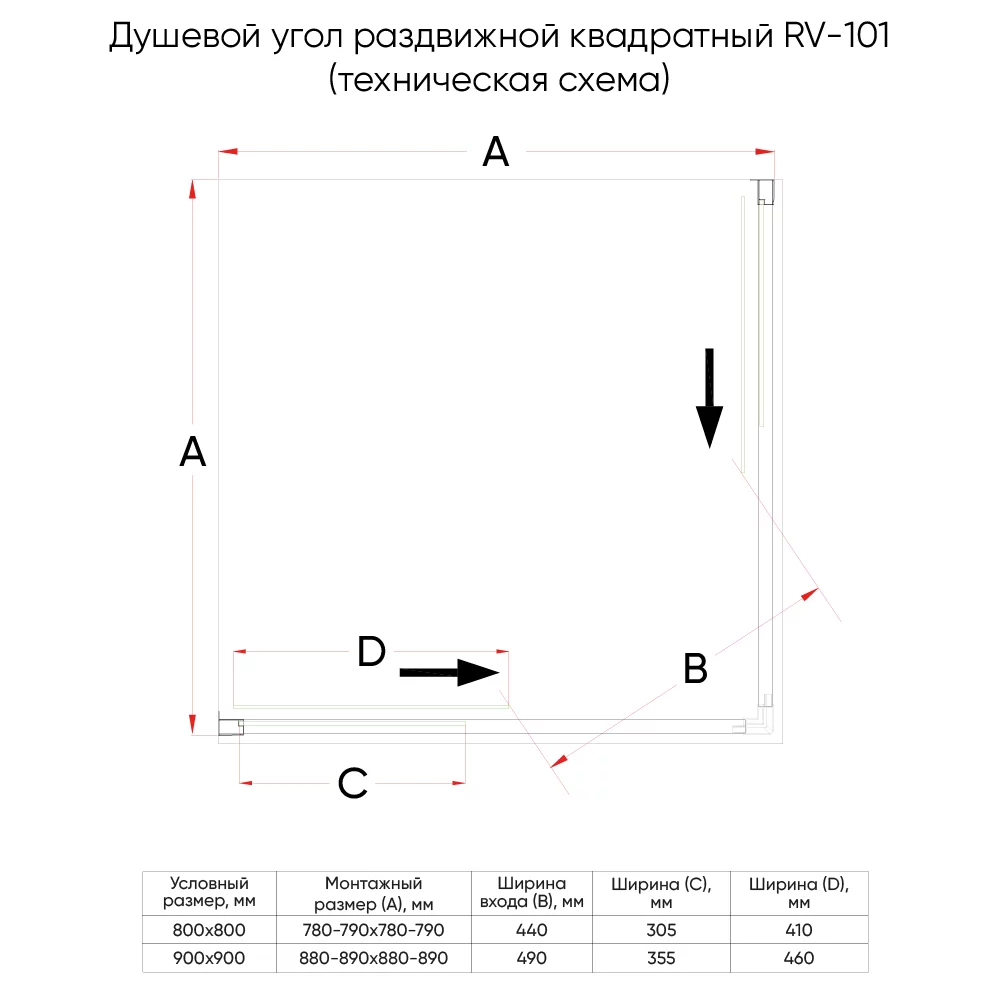 Душевой уголок Veconi RV-101B RV101B-90-01-C4 900*1900 мм (чёрный матовый/прозрачное)