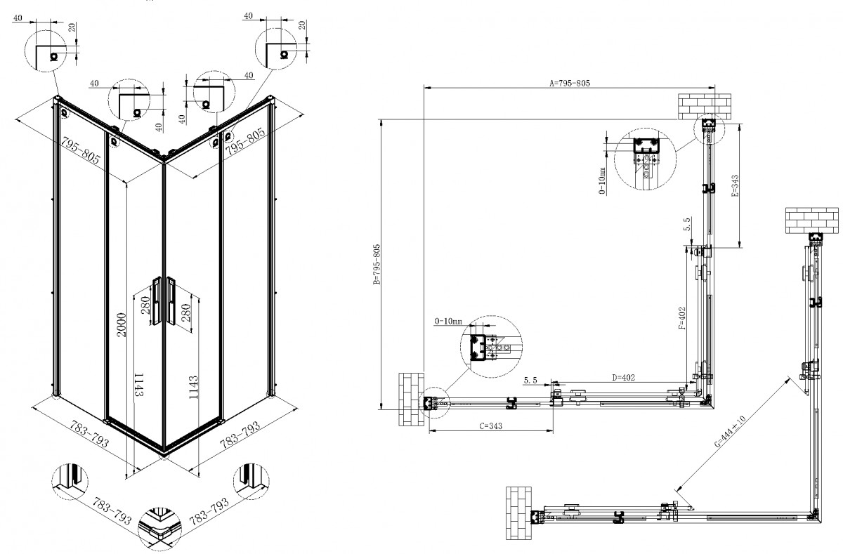 Душевой уголок Vincea Ultima VSS-7UL8080CLGM 800*800 мм (вороненая сталь/прозрачное)