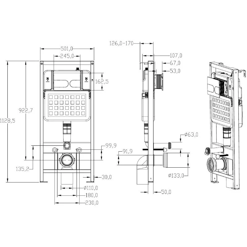 Ее размеры (1130×500 мм) позволяют удобно разместить конструкцию в санузле.