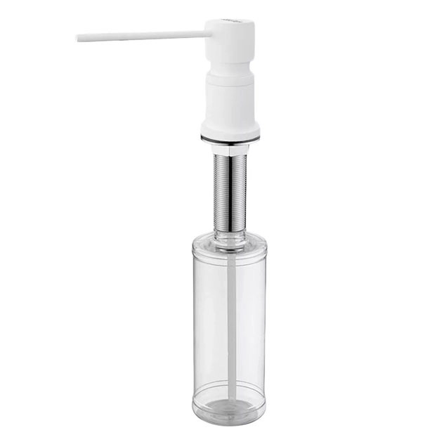 Дозатор для жидкого мыла Paulmark Kraft D003-WH. Цвет-белый матовый. Встраиваемый, объемом 350 мл. Устанавливается в столешницу, кухонную мойку с площадкой или в раковину в ванной комнате. Рекомендуемый диаметр монтажного отверстия для установки дозатора – 35 мм. Комплектация: дозатор, колба объемом 350 мл