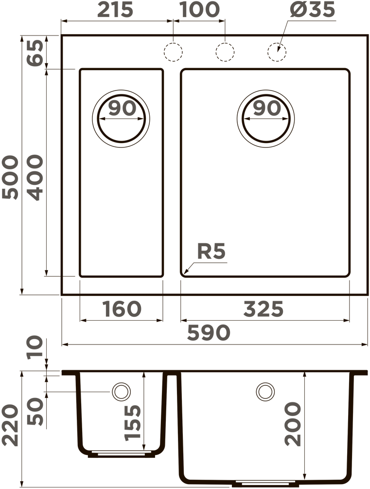 Кухонная мойка Omoikiri Bosen 59-2A GR 4993822 590*500 мм (серый)