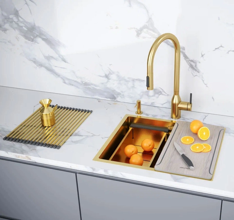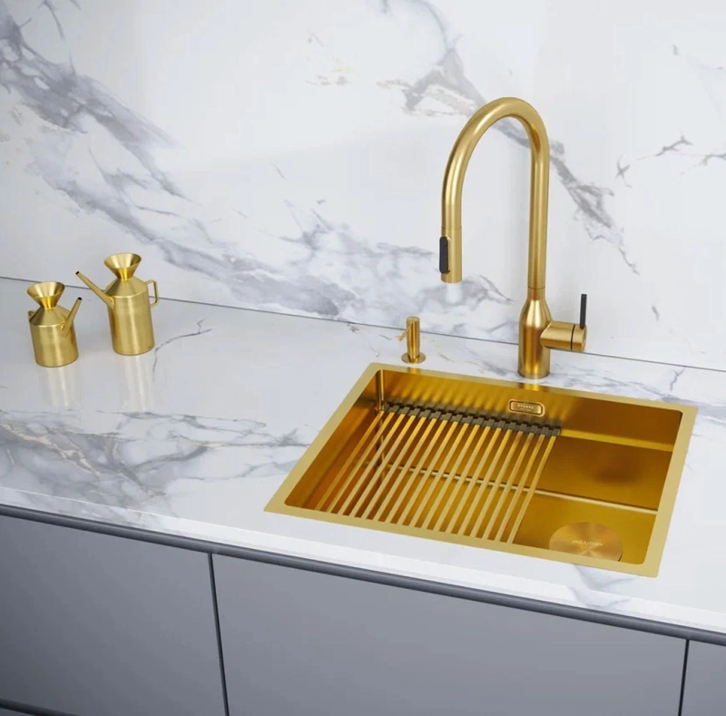 Кухонная мойка Paulmark Next Pro 54 Uni 45х54 PM705445-BG от производителя Paulmark. Нержавеющая сталь обеспечивает стойкость к высокой температуре и коррозии, что делает её практичным выбором. Данная мойка для кухни прямоугольной формы обеспечивает максимальную вместительность для удобного мытья крупной посуды. Встраиваемая конструкция придаёт аккуратный вид и облегчает уборку на кухонной поверхности. Золотой цвет привносит элемент роскоши и утонченности в интерьер. Одна чаша практична для небольших кухонь и обеспечивает простоту ухода. Кухонная мойка Paulmark Next Pro 54 Uni 45х54 PM705445-BG имеет гарантию 5 лет.