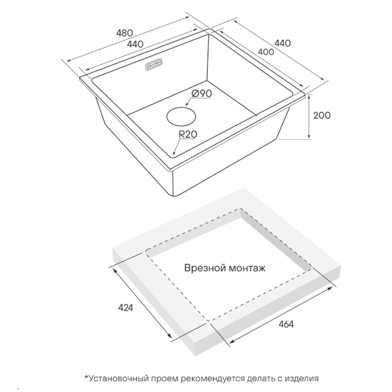 Кухонная мойка Paulmark Vista 48 Uni 48х44 PM304844-GM. Цвет-вороненая сталь. Мойки VISTA UNI выполнены в классическом стиле, радиус скругления внутренних углов 20 мм упрощает уход за мойкой. Комплектация: мойка, слив-перелив, сифон бутылочного типа с подключением посудомоечной машины (ПММ), комплект крепежа для врезного и подстольного монтажа