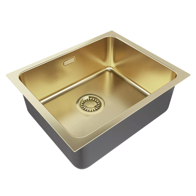 Кухонная мойка Paulmark Vista 54 Uni 54х44 PM305444-LG. Цвет-светлое золото. Мойки VISTA UNI выполнены в классическом стиле, радиус скругления внутренних углов 20 мм упрощает уход за мойкой. Комплектация: мойка, слив-перелив, сифон бутылочного типа с подключением посудомоечной машины (ПММ), комплект крепежа для врезного и подстольного монтажа