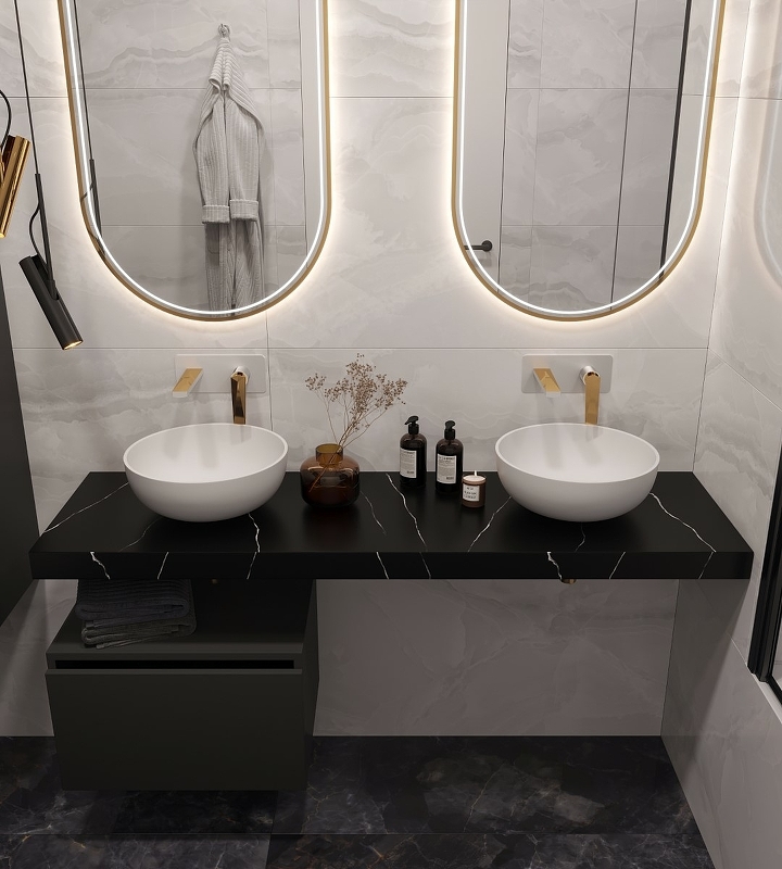 Столешница под раковину ArmadiArt Flat 869-160-NM 161 см (чёрный мрамор)