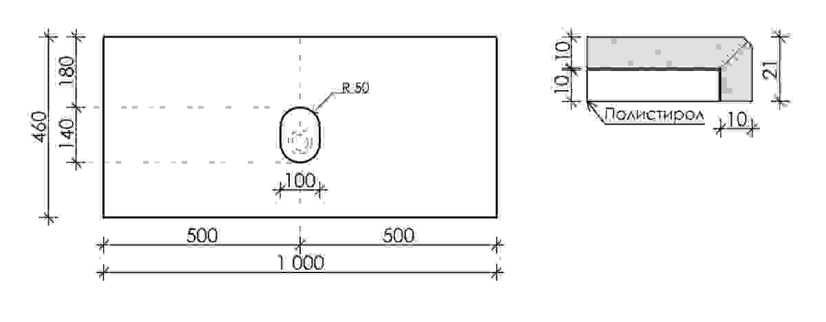 Столешница для ванной комнаты 1000х460 без отверстия под смеситель, цвет kreman, артикул TT100A2
