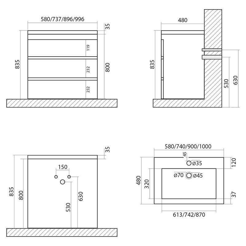 Тумба под раковину Art&Max Family FAMILY-580-3C-PIA-CV 58 см (серый) подвесная