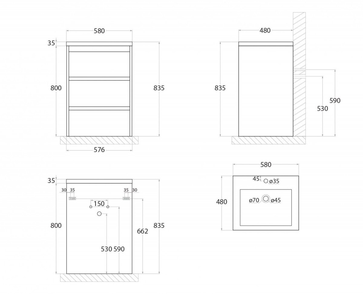 - Ширина: 580 мм