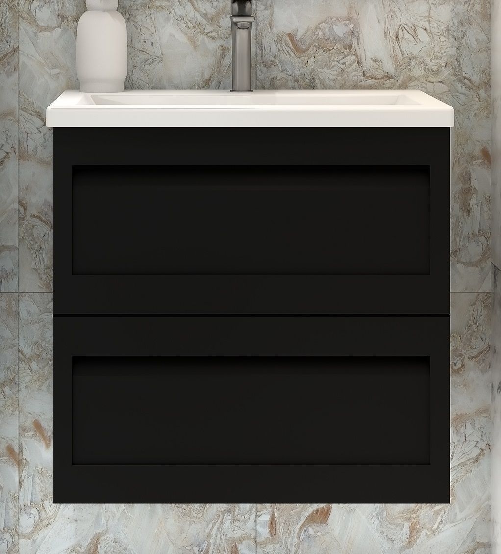 Тумба под раковину Art&Max Platino AM-Platino-580-2C-SO-NM 58 см (черный матовый) подвесная