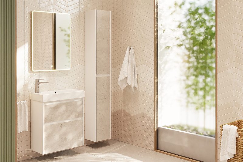 Тумба под раковину Dreja Slim 99.0502 55 см (бетон/белый) подвесная/напольная