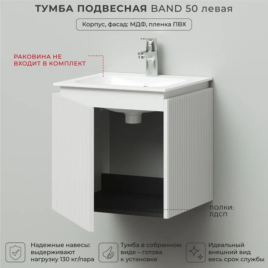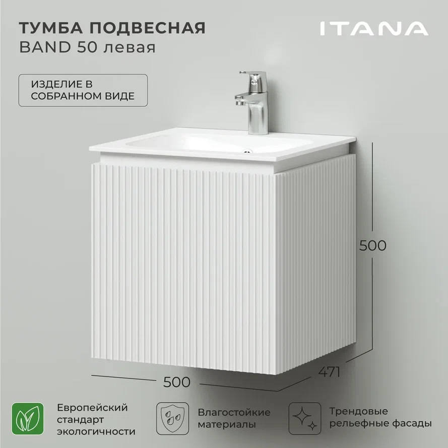 Тумба под раковину Итана BAND 4657828217279 50 см (белый матовый) подвесная L