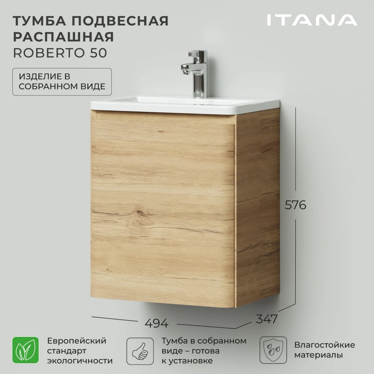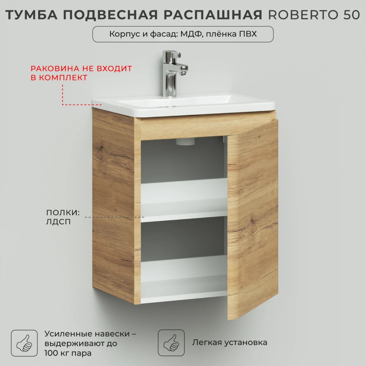 Тумба под раковину Итана Roberto 4657825877773 50 см (дуб мавелла голд) подвесная