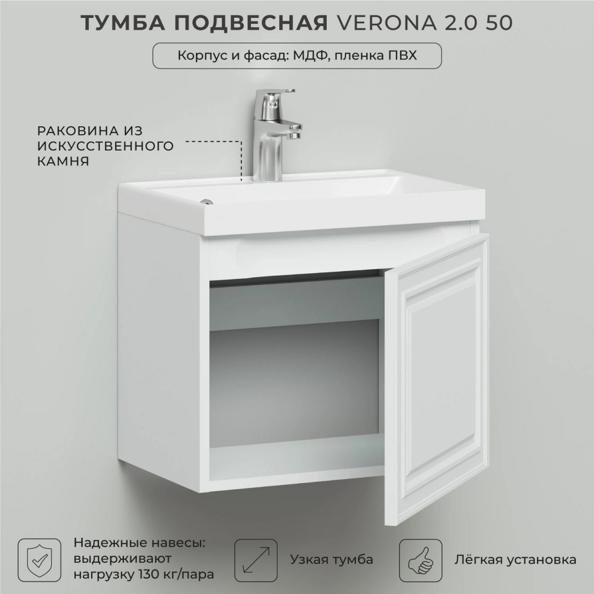 Тумба с раковиной Итана Verona 2.0 50 в цвете Бланж - идеальное решение для стильной и функциональной ванной комнаты.
