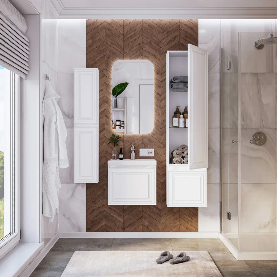 Белый цвет придаст вашей ванной комнате современный и изысканный вид, а продуманная конструкция обеспечит удобство в эксплуатации.