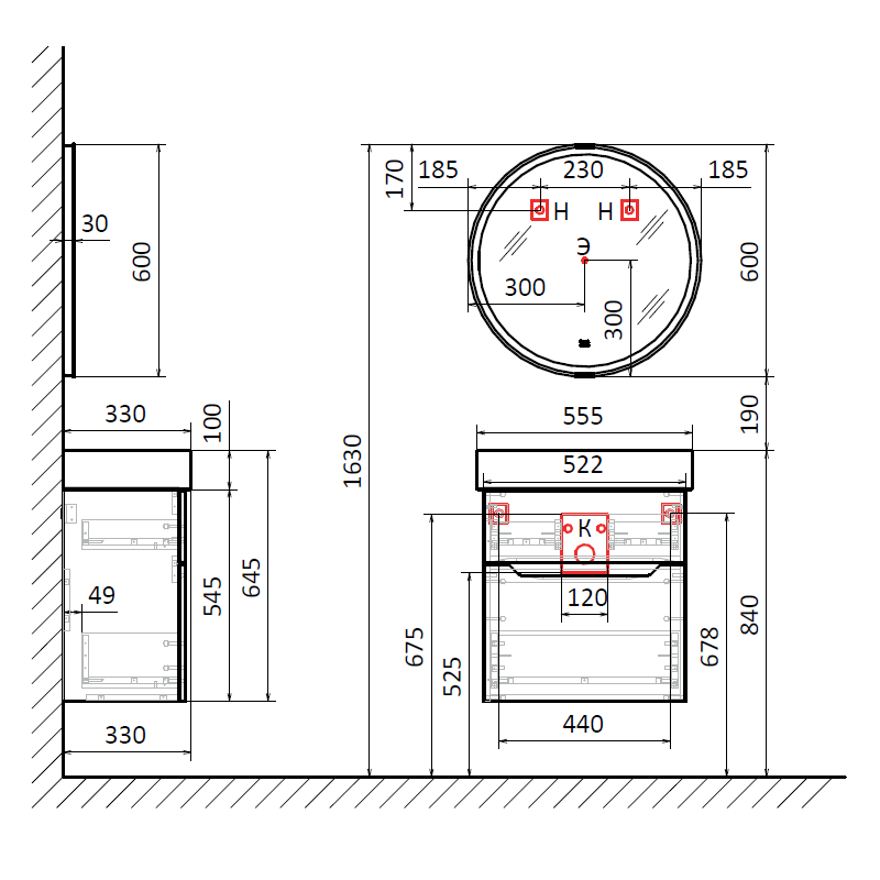 Тумба под раковину Jorno Folk Folk.01.55/P/W/JR 55 см (белый) подвесная