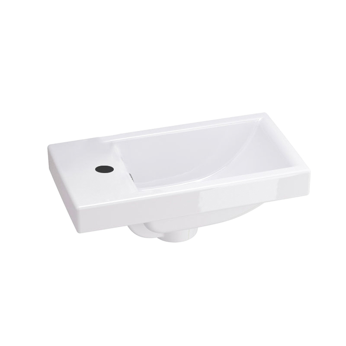 Тумба с умывальником для ванной комнаты, подвесная. Размеры тумбы без умывальника: 213х390х600 мм (ДхШхВ). Размеры умывальника: 220х400 мм (ДхШ). Фасад ЛДСП 16 мм в эмали, боковины ЛДСП белый глянец. Одна распашная дверца, 2 открытые полки. Сбоку тумбы - отверстие для гигиенического душа с пластиковым кольцом. Петли с доводчиком. Материал умывальника: фаянс, ширина: 40 см. Упаковка: картонная коробка.