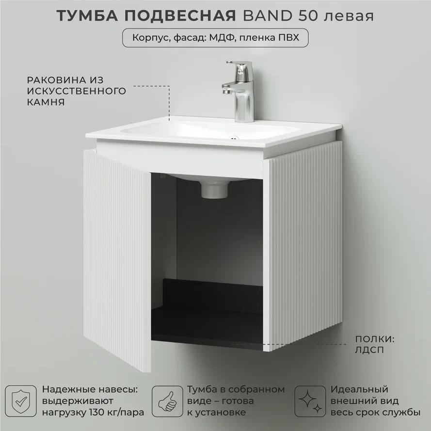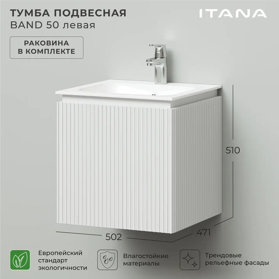 Тумба с раковиной Итана BAND 4657828217316 50 см (белый матовый) подвесная L