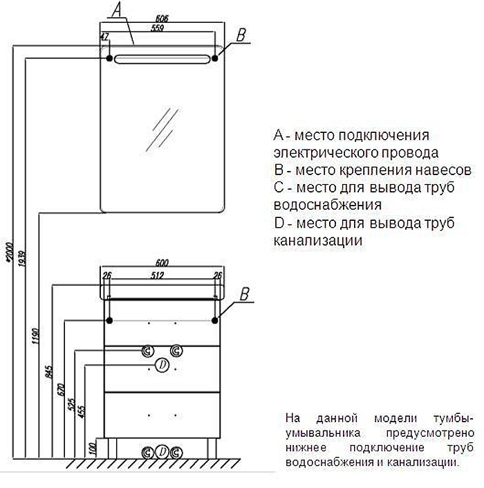 Тумба под раковину Aquaton Америна М 60 см (белый)