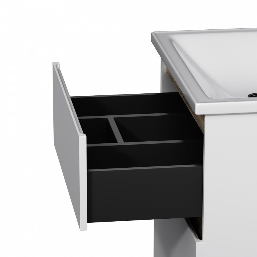 цвете Anthracite и имеет противоскользящее покрытие. Встроенная керамическая раковина белоснежного цвета оснащена специальным бортиком для защиты от пролива воды за мебель.
