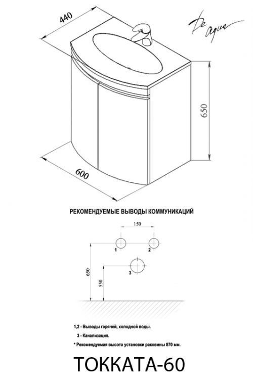 Тумба под раковину Aquanet De Aqua Токката 60 см (белый ) 2 дверцы подвесная