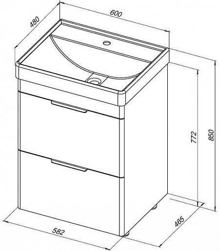Тумба под раковину Aquanet Ирис new 60 белый глянец (2 ящика)