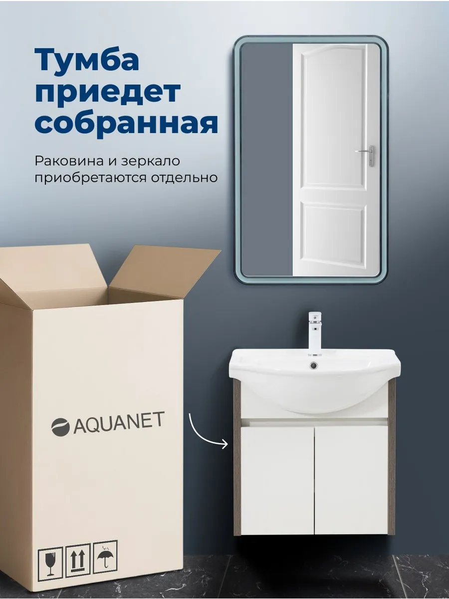 Тумба под раковину Aquanet Сидней 345122 60 см (дуб рошелье/белый) подвесная