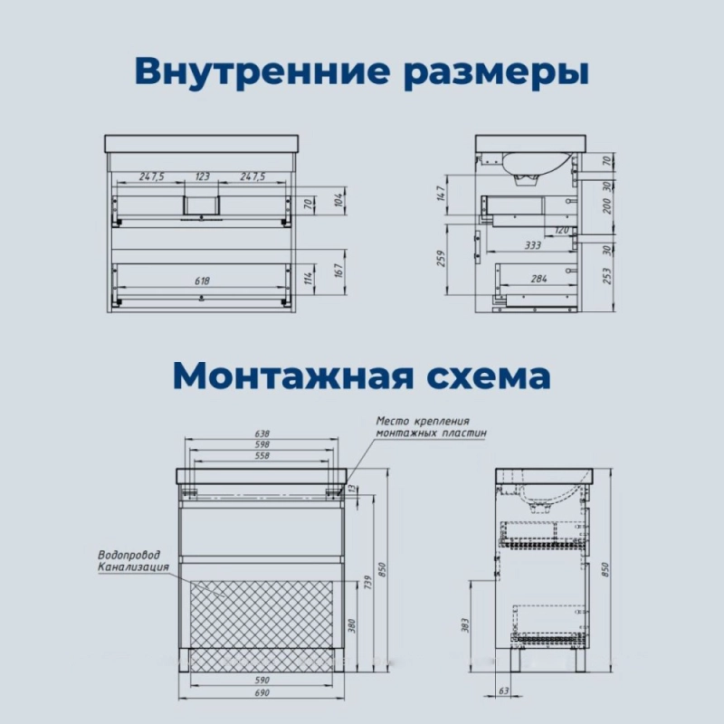 ВНИМАНИЕ! Раковина не входит в комплект и приобретается дополнительно