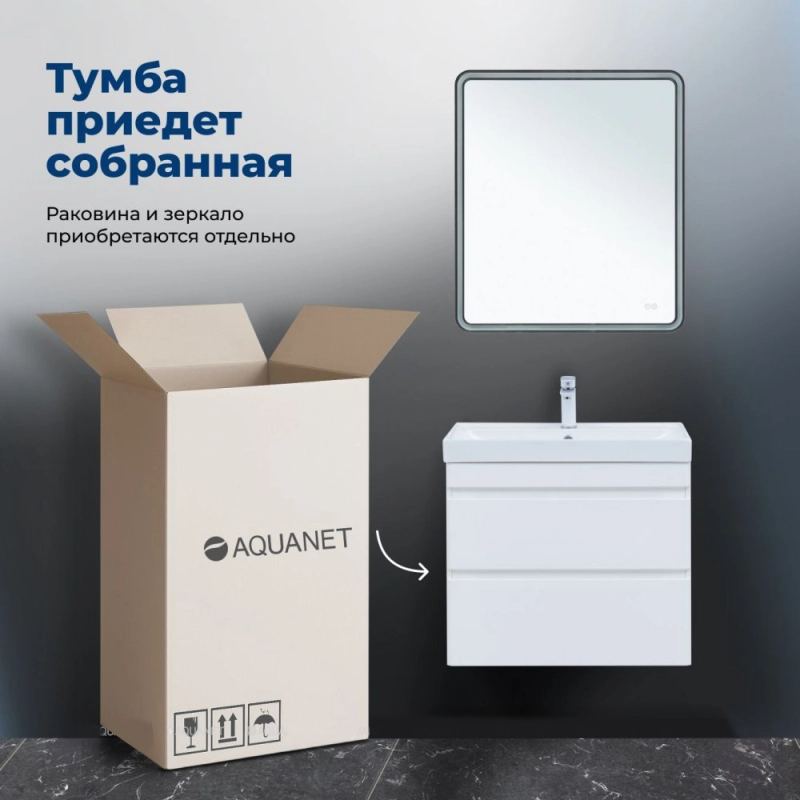 Тумба под раковину Aquanet Слим 346048 70 см (белый сатин) подвесная