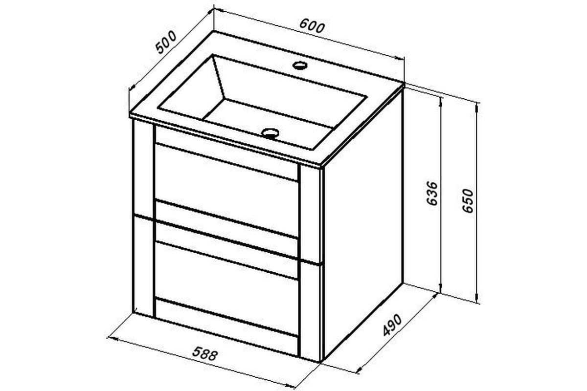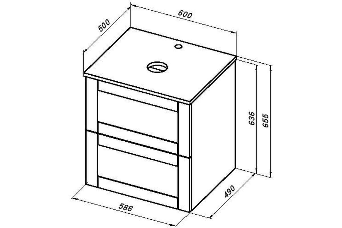 Глубина тумбы с раковиной или столешницей - 500 мм.