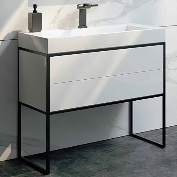 Напольная тумба под раковину Clarberg Logic 70 LOG0107N с двумя ящиками. Главная особенность коллекции - это применение алюминиевого анодированного профиля в чёрном цвете.