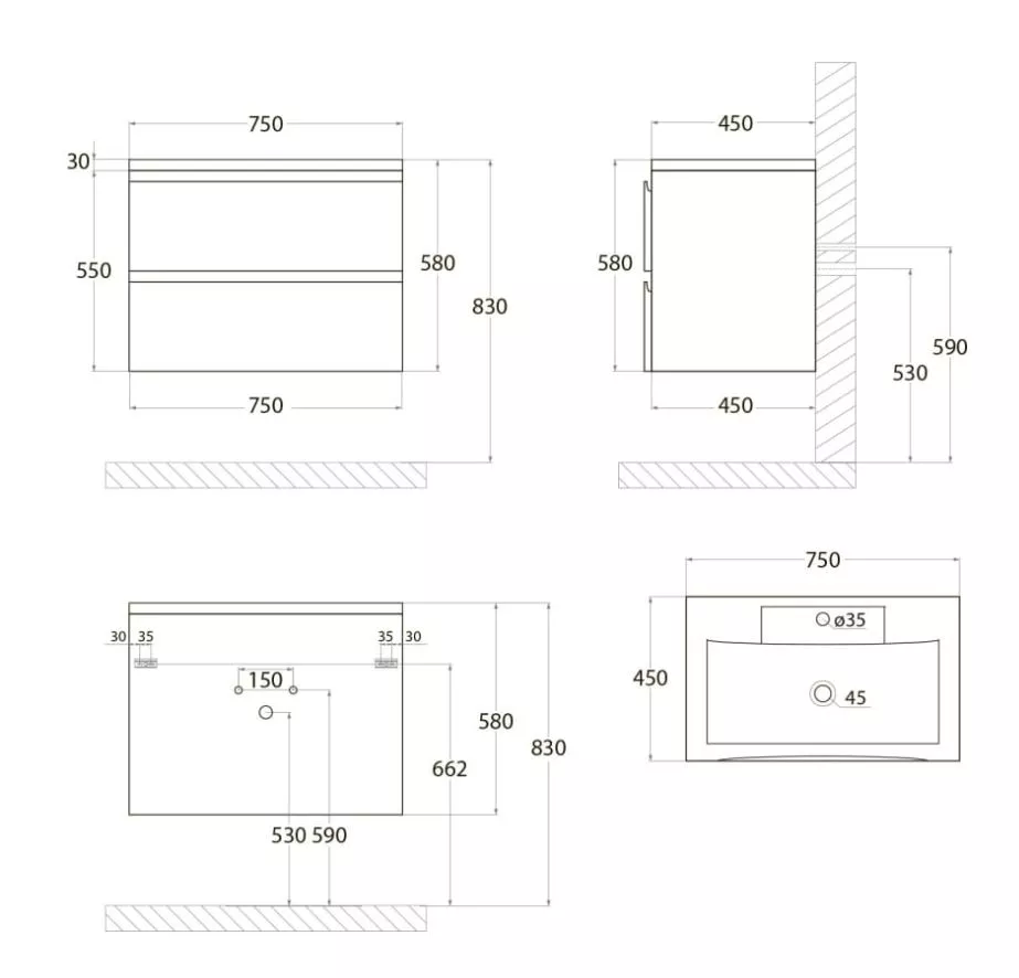 - Ширина: 750 мм