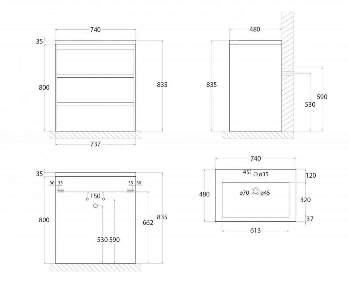 - Ширина: 740 мм