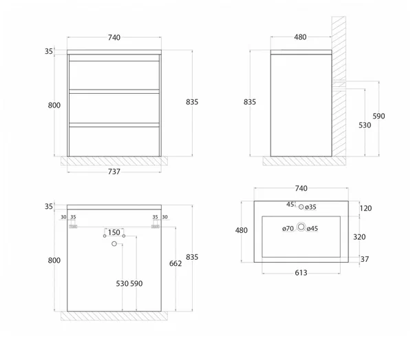 Тумба под раковину Art&Max Family FAMILY-M-750-3C-PIA-HG 75 см (дуб харбор золотой) напольная