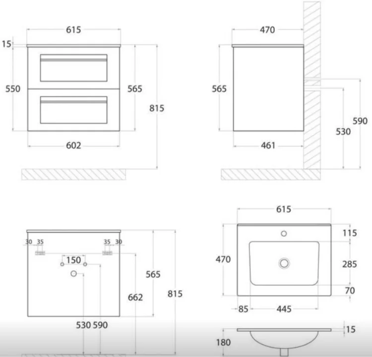 Тумба под раковину Art&Max Platino AM-Platino-600-2C-SO-GM-Cer 60 см (серый матовый) подвесная