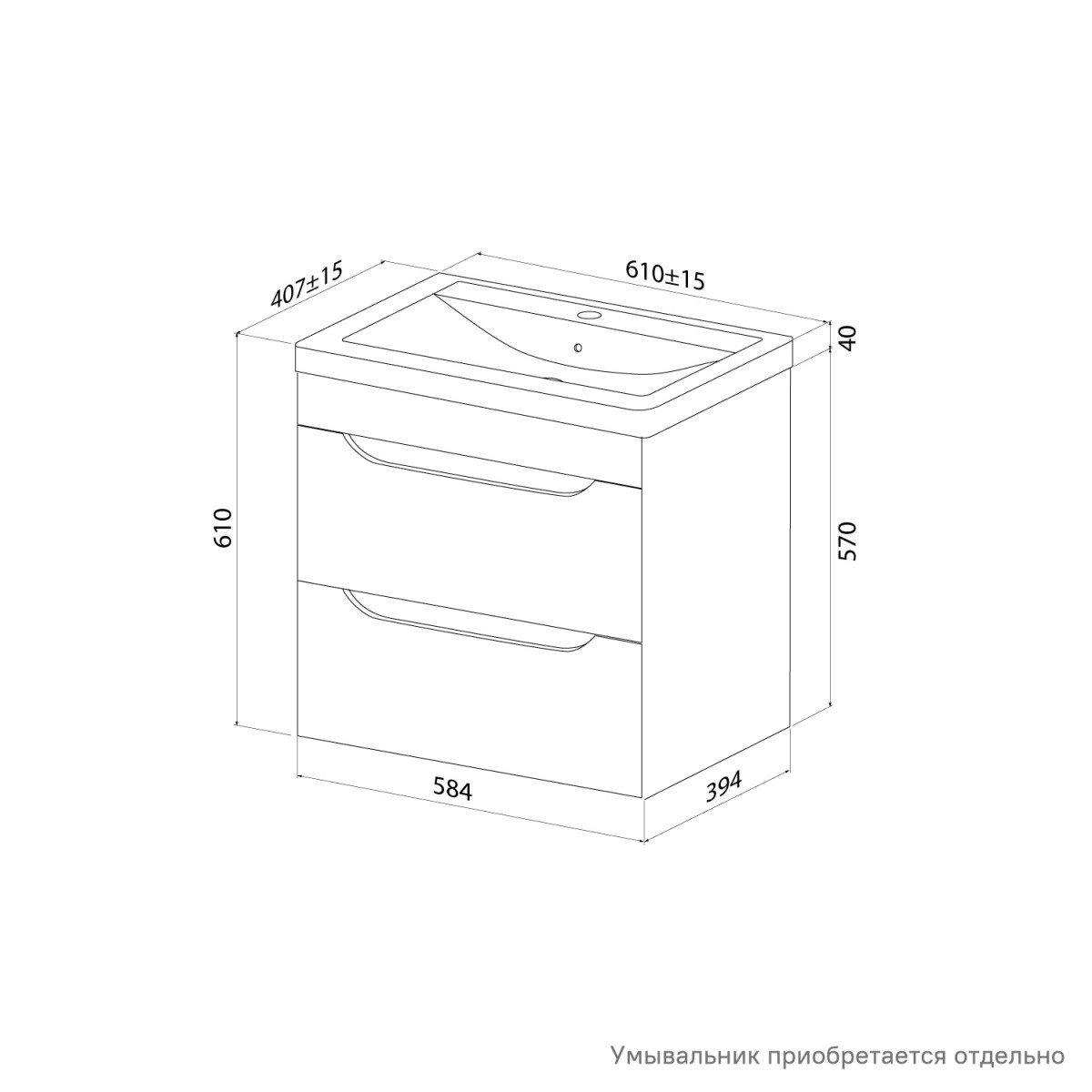 Длина изделия, мм: 394 Ширина изделия, мм: 584 Высота изделия, мм: 570 Дополнительный материал: ЛДСП Основной материал: МДФ Покрытие: Эмаль Материал боковин: ЛДСП Размер изделия, мм.: 584 х 394 х 570 Цвет изделия: Белый Материал полок: ЛДСП Материал ручки: Встроенная ручка Материал умывальника: Санфарфор Страна бренда: Россия Материал фасада: МДФ Монтаж корпуса: Подвесной Тип умывальника: Встраиваемый MOQ: 30 Наличие перелива в умывальнике: Да Поверхность: Глянцевая Покрытие боковин: Ламинация Покрытие фасада: Эмаль Система хранения: Ящики Сифон в комплекте: Нет Тип монтажа: Подвесной Характеристики фурнитуры: Доводчик