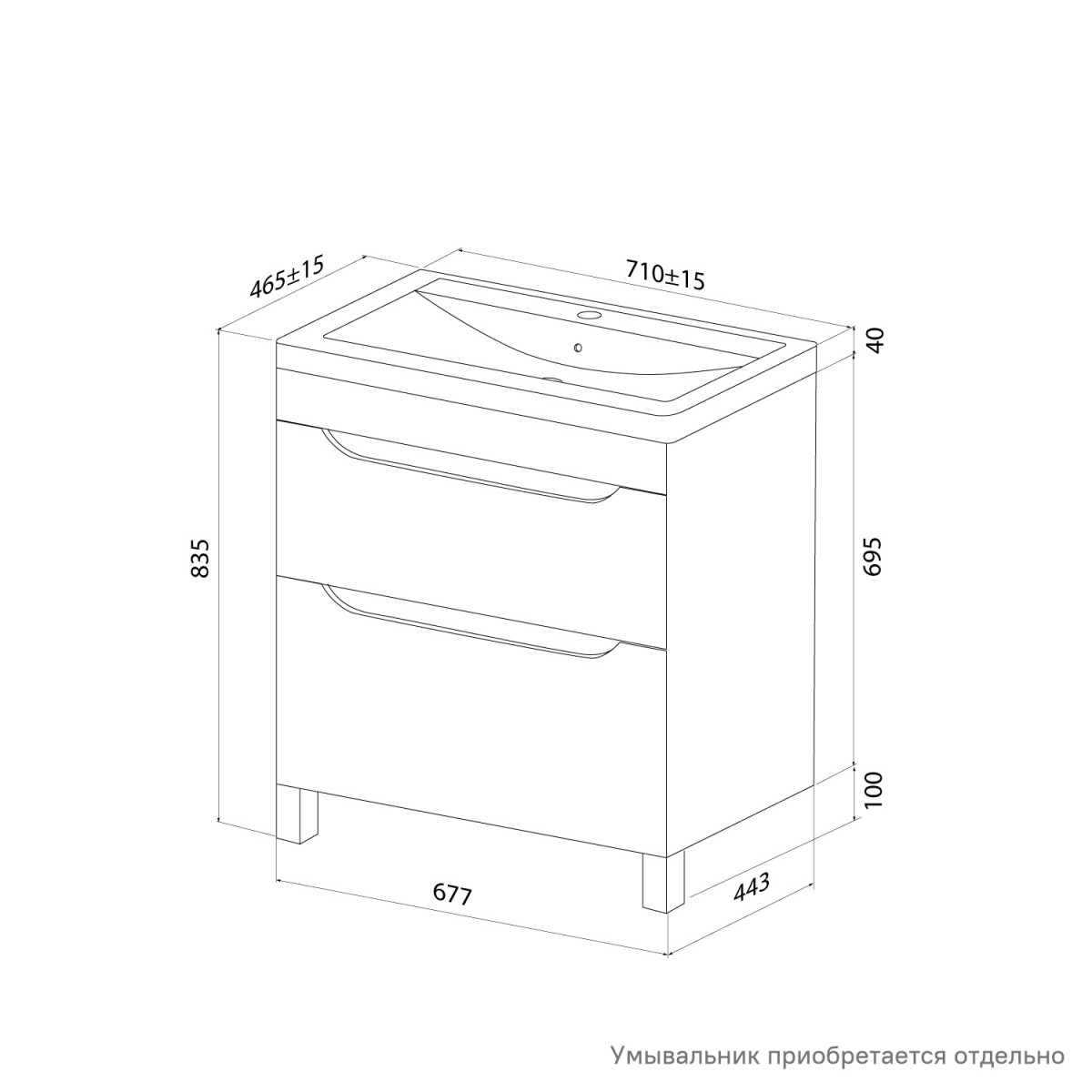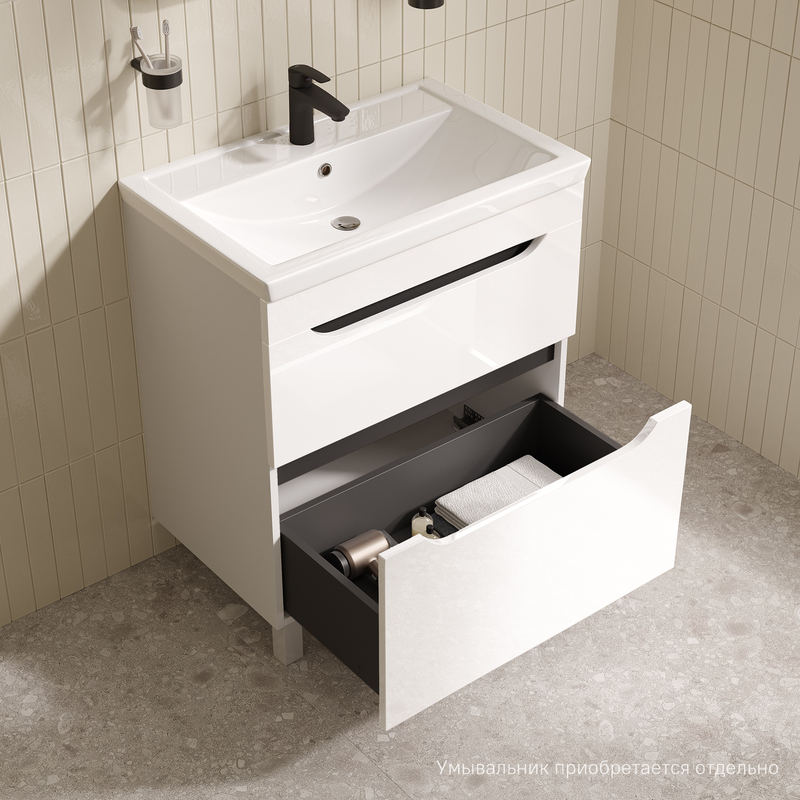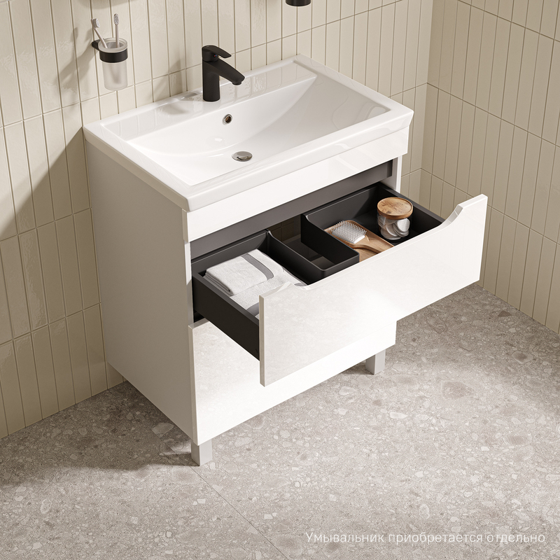 Длина изделия, мм: 443 Ширина изделия, мм: 677 Высота изделия, мм: 795 Основной материал: МДФ Покрытие: Эмаль Материал боковин: ЛДСП Размер изделия, мм.: 677 х 443 х 795 Цвет изделия: Белый Материал полок: ЛДСП Материал ручки: Встроенная ручка Материал умывальника: Санфарфор Материал фасада: МДФ Страна бренда: Россия Тип умывальника: Встраиваемый Монтаж корпуса: Напольный MOQ: 30 Наличие перелива в умывальнике: Да Поверхность: Глянцевая Покрытие боковин: Ламинация Покрытие фасада: Эмаль Система хранения: Ящики Сифон в комплекте: Нет Тип монтажа: Напольный Характеристики фурнитуры: Доводчик Цвет ножек: Хром