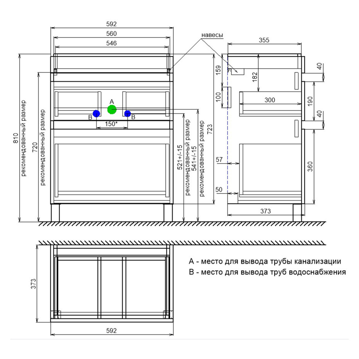 • В комплекте белые пластиковые ножки высотой 100 мм и сифон, за счет чего тумба полностью готова к установке.