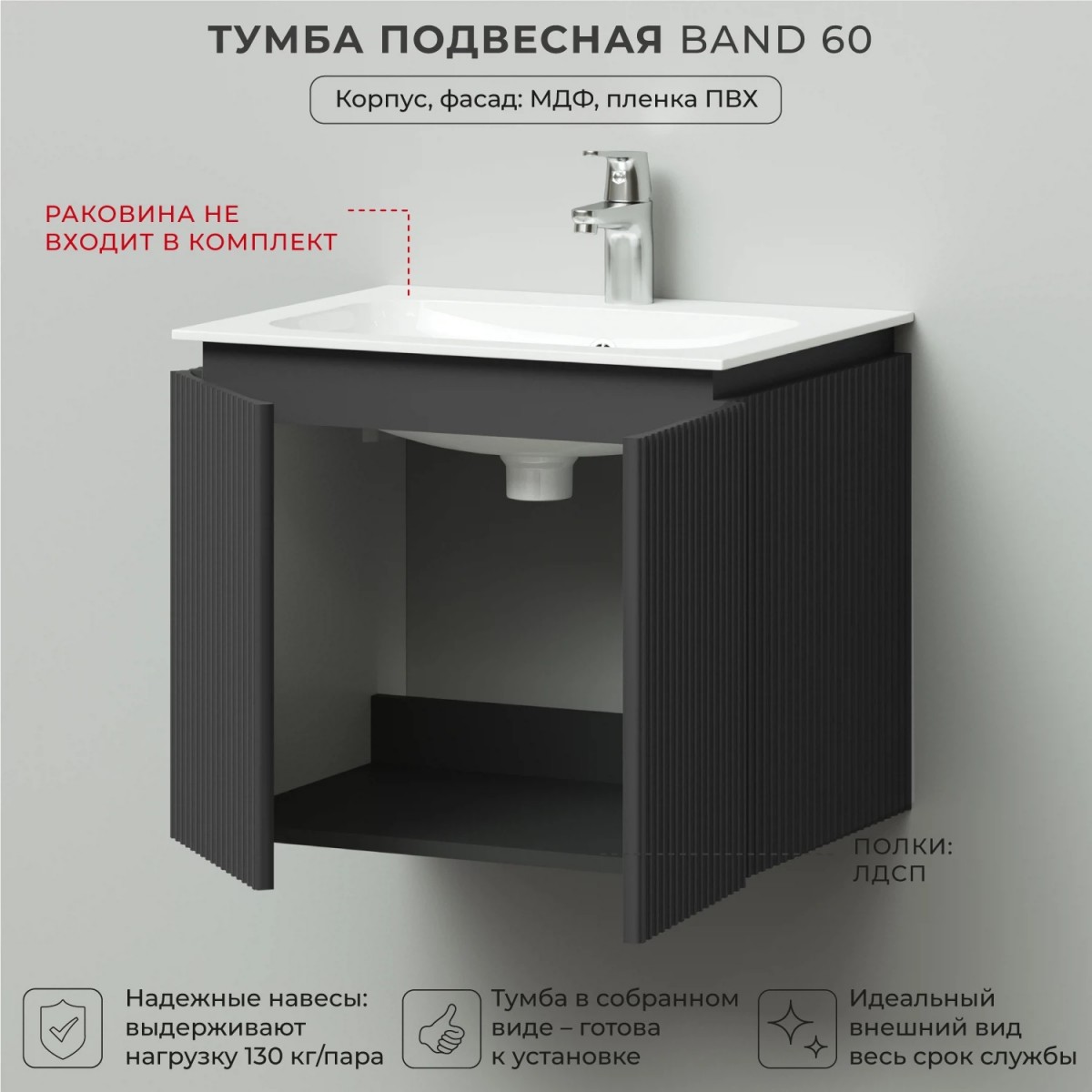 Тумба под раковину Итана BAND 4657826222558 60 см (графит) подвесная