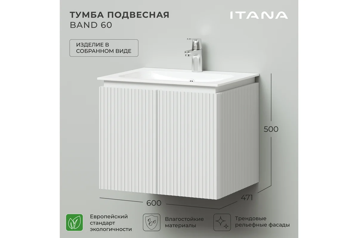 Тумба под раковину Итана BAND 4657828217286 60 см (белый матовый) подвесная