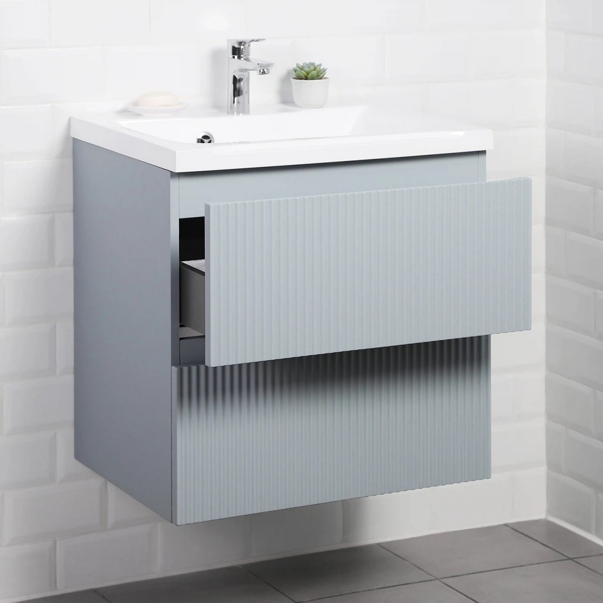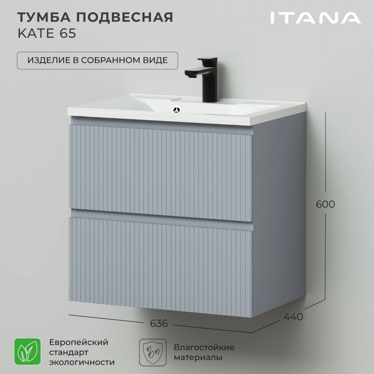 Коллекция Kate - воплотила в себе тренд на фактурные фасады. Идеальный "рубчик" - простое и стильное дизайнерское решение для декорирования фасадов - эта мебель бесспорно станет украшением современной ванной комнаты. Коллекция выполнена из МДФ и покрыта ПВХ пленкой, что делает её устойчивой к влаге, а значит долговечной. Удобные фрезерованные ручки, качественная фурнитура с доводчиками, вместительность - мы продумали все, чтобы мебель была не просто красивой, но еще и функциональной, приятной в использовании.