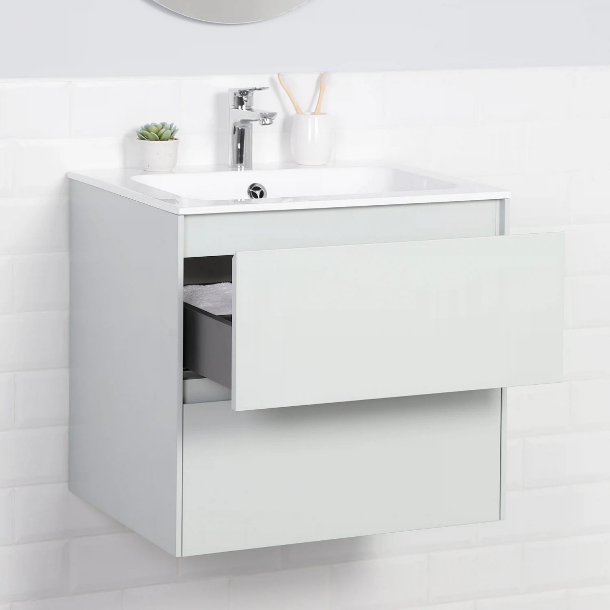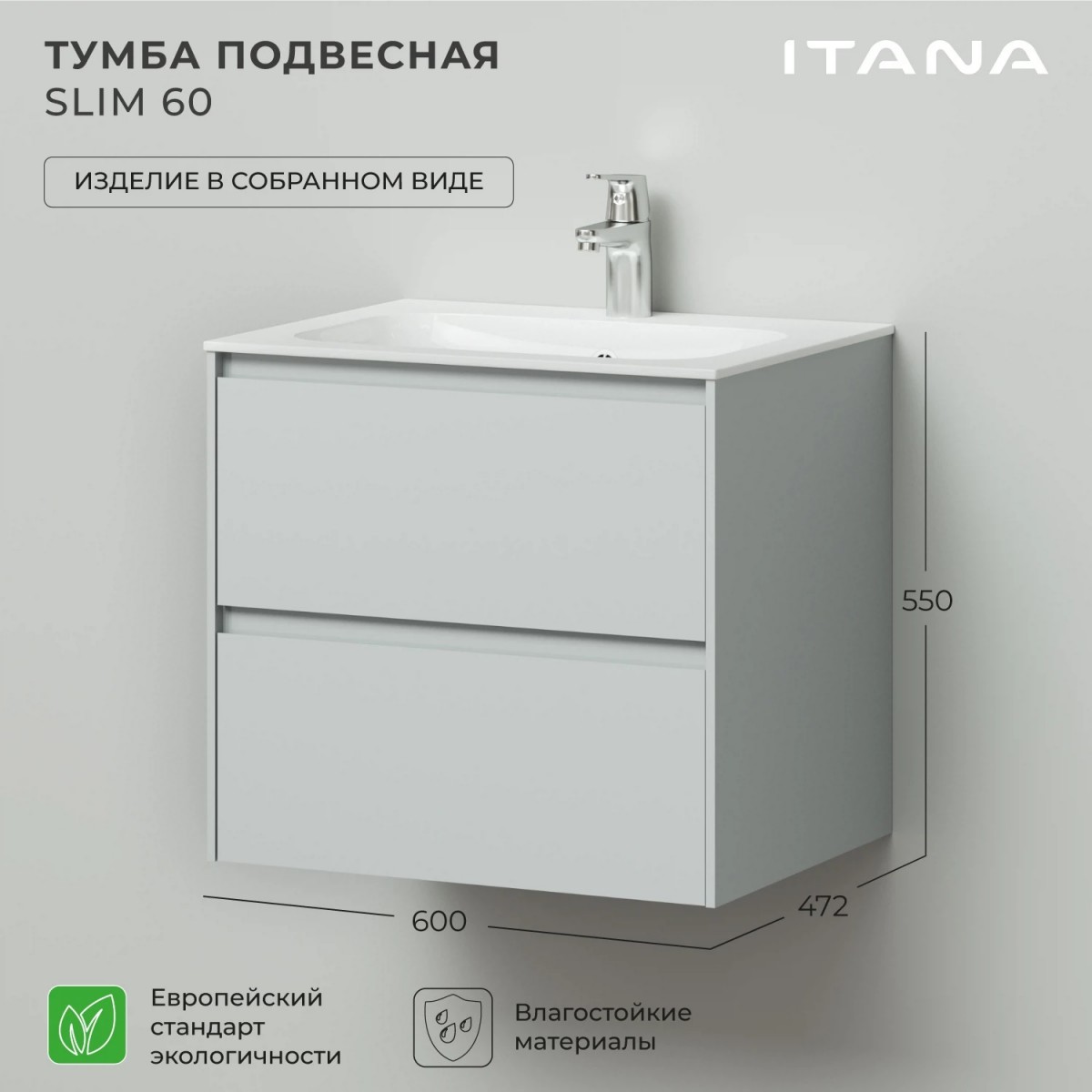 Тумба под раковину Итана Slim 4657810334304 60 см (серо-зеленый матовый) подвесная