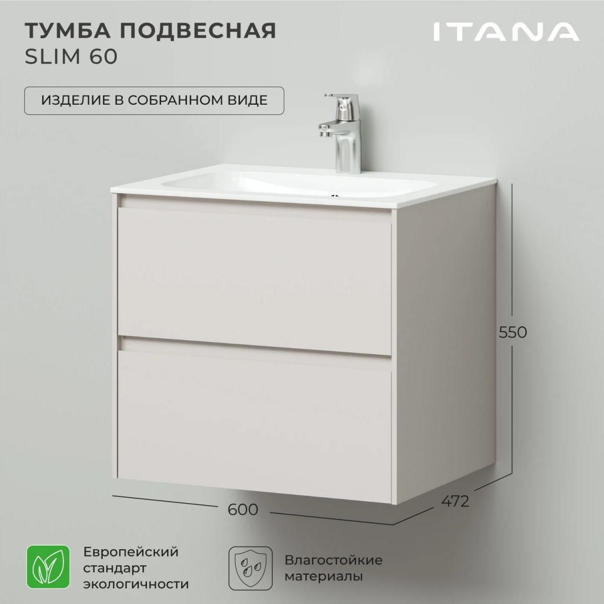 Тумба под раковину Итана Slim 4657810334311 60 см (бежевый матовый) подвесная