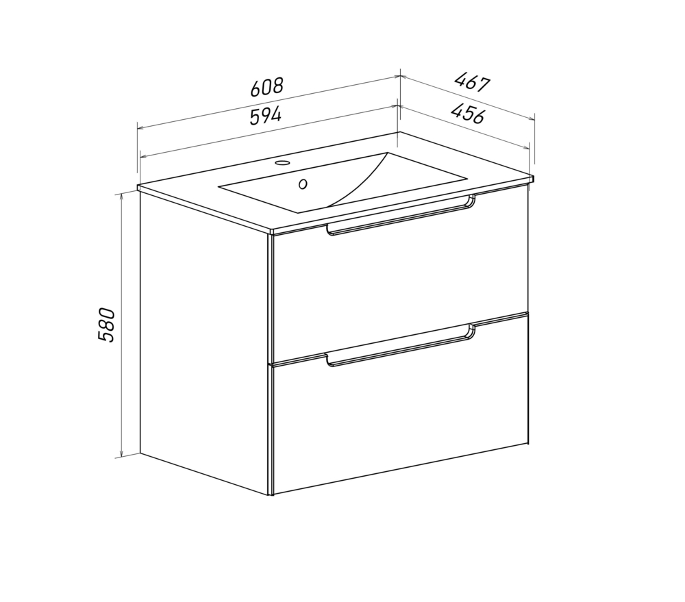 Тумба в ванную комнату имеет два выдвижных ящика.