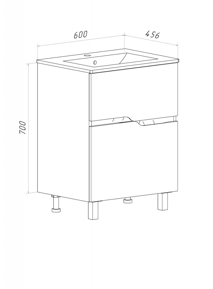 Габариты корпуса тумбы (ШхВхГ): 600х700х456 мм.