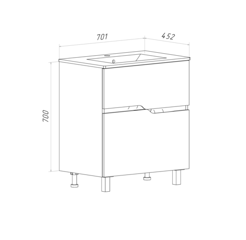 Габариты корпуса тумбы (ШхВхГ): 701х700х452 мм.