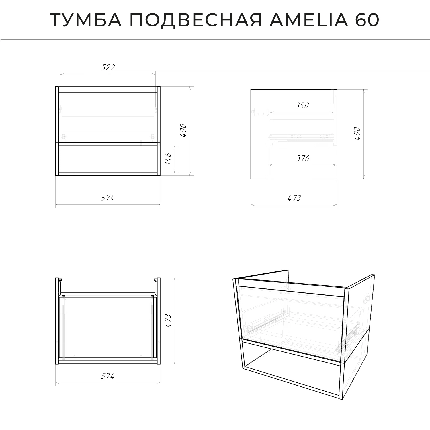 Тумба со столешницей Итана Amelia 2.0 4657792959540 60 см (дуб бурбон) подвесная